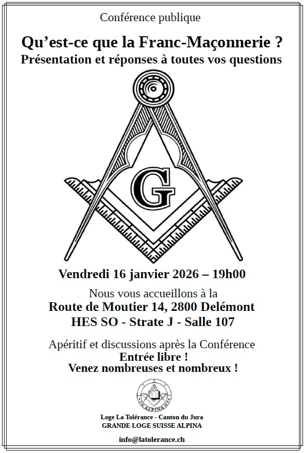 En 2026, la Loge La Tolérance prévoit plusieurs événements pour faire découvrir la Franc-Maçonnerie :